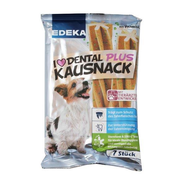 معمولا غذای تشویقی گوشتخواران نیز مانند غذای اصلی آنها، حاوی مقدار زیادی پروتئین است؛ این غذا در خود 18% ترکیب پروتئینی دارد. همانطور که نام این غذا گویا است، این محصول دنتال بوده و بیشتر مناسب تقویت دندان و سلامت دهان سگ ساخته شدهاست. حتی ساختار ظاهری تکههای این تشویقی، به شکل ستاره هستند تا تشکیل پلاک روی دندان سگ شما ندهند. تعداد تکههای میلهای با سر ستارهای شکل داخل این بسته، 7 عدد هستند. بین انواع ویتامینها، ویتامین C بیشتر از بقیه در این محصول وجود دارد؛ مقدار این ویتامین نسبت به کل محصول، 380 میلی گرم در یک کیلوگرم است.