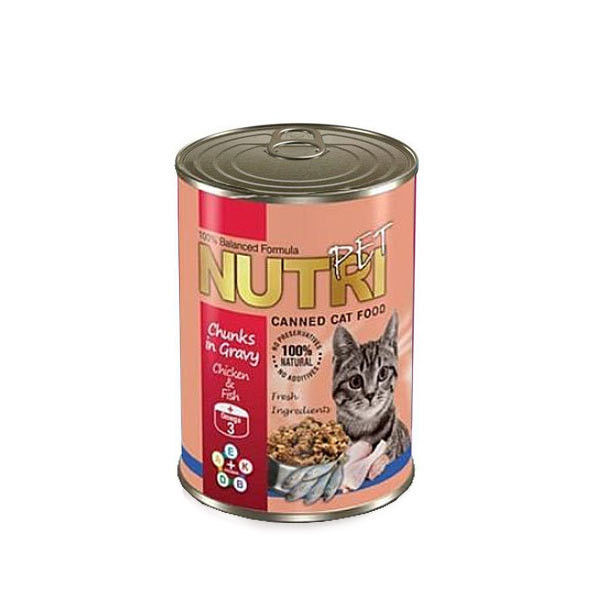 کنسرو گربه نوتری پت محصولی با طعم مرغ و ماهی می باشد که به صورت چانک یا لقمه ای تهیه شده و غنی از انواع ویتامین ها و مواد معدنی کمیاب است.برند نوتری پت را می توان از جمله معتبرترین برند های ایرانی به شمار آورد که در خصوص تهیه خوراک های ویژه حیوانات خانگی فعالیت دارد. این برند محصولات خود را مطابق با به روزترین تکنولوژی های علمی دنیا تهیه کرده که اثر بخشی بسیار مناسبی دارد. با معرفی یک خوراک ویژه گربه از این برند ما را همراهی کنید.